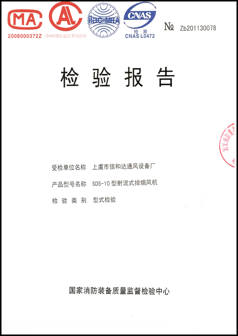 地鐵、隧道射流風(fēng)機(jī)檢驗(yàn)報(bào)告